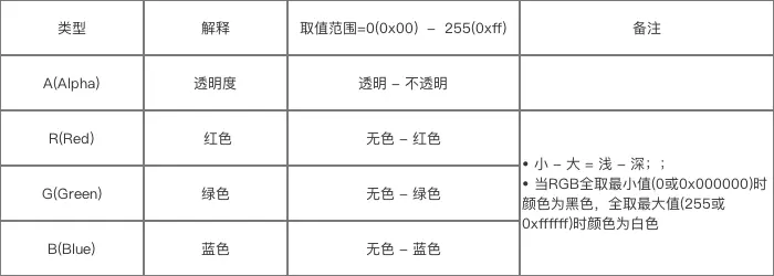// Color类使用ARGB值表示