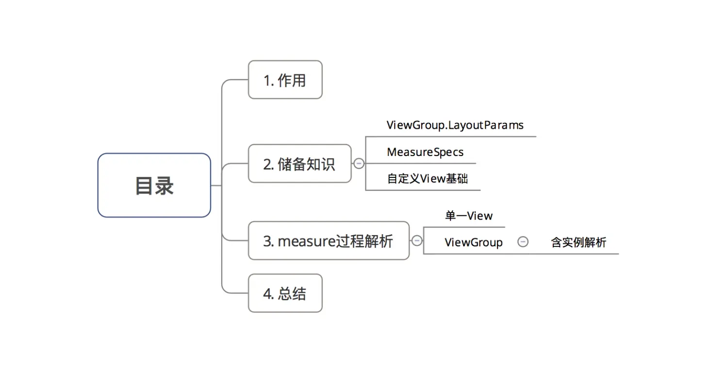 - 测量流程(Measure)根据视图(View)的类型分为两种情况:单一View和视图组ViewGroup;